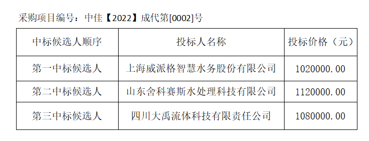 內江市水務有限責任公司水木青華小區集中式管道直飲水成套設備及附件采購(含安裝)項目評標結果公示