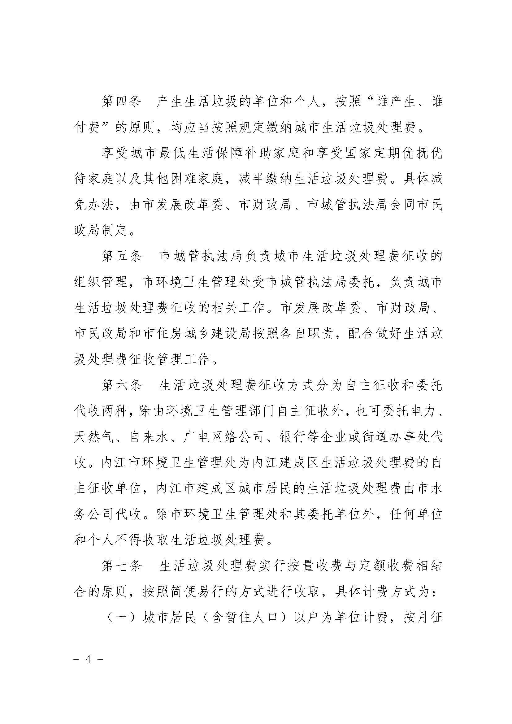 關于印發《內江市城市生活垃圾處理費征收管理辦法》的通知