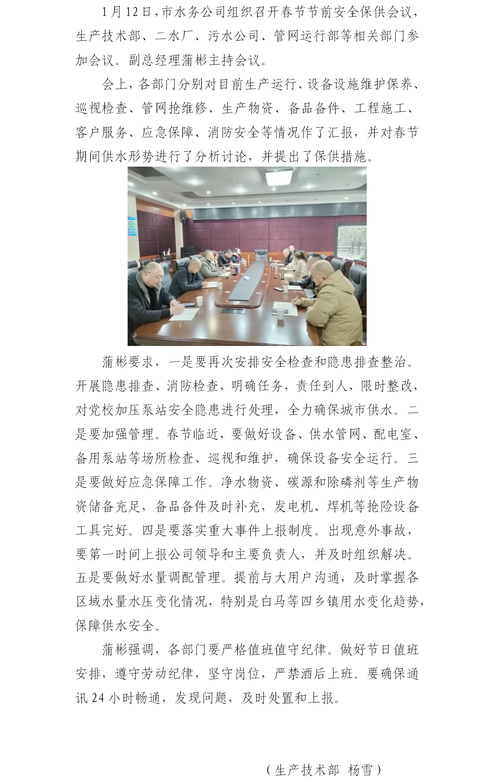 市水務(wù)公司召開春節(jié)前保障供排水安全生產(chǎn)工作會(huì)議