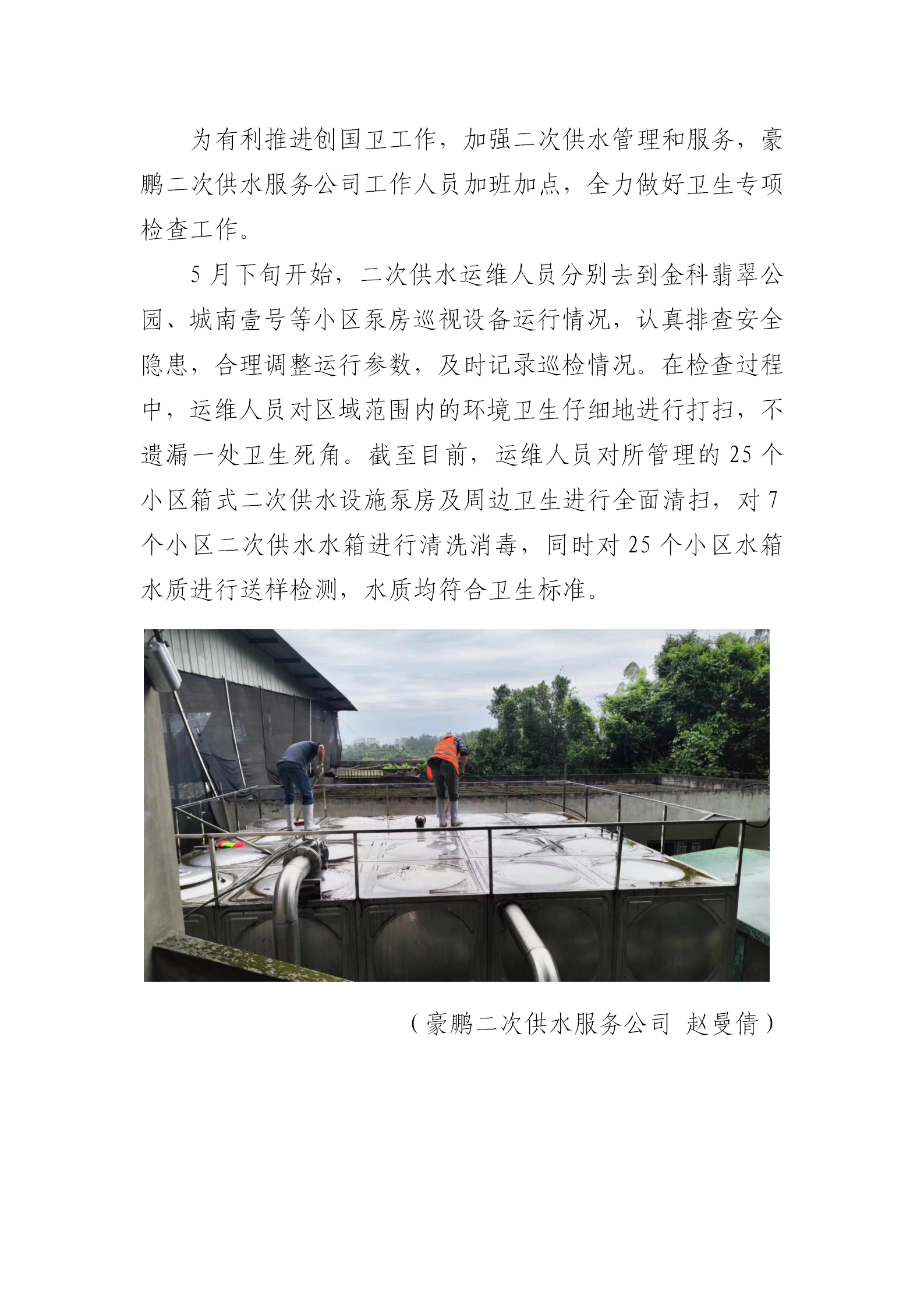 豪鵬二次供水服務公司開展供水泵房衛生專項檢查工作