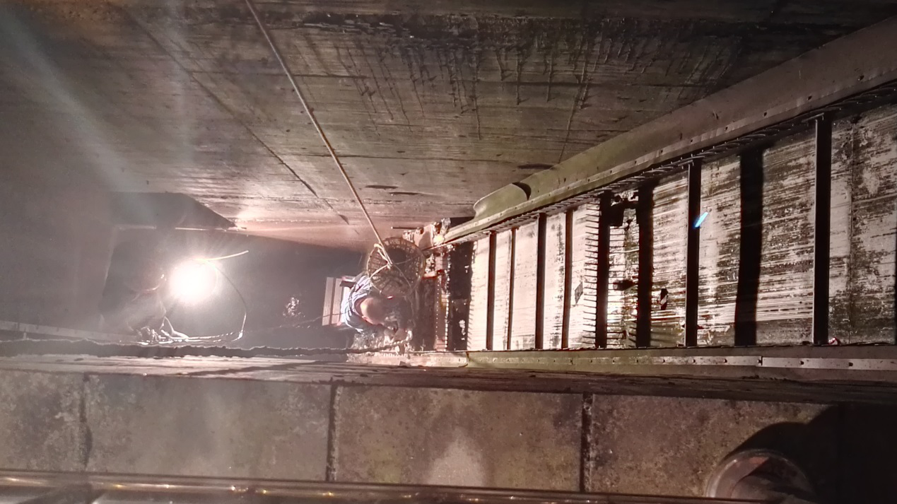 為盡快恢復運行,減少污水溢流,大家忍受集水井下難聞的臭味,克服了拆卸過程中遇到的種種困難,終于在第二天凌晨將兩臺粗格柵全部提起來,并裝車返廠維修。