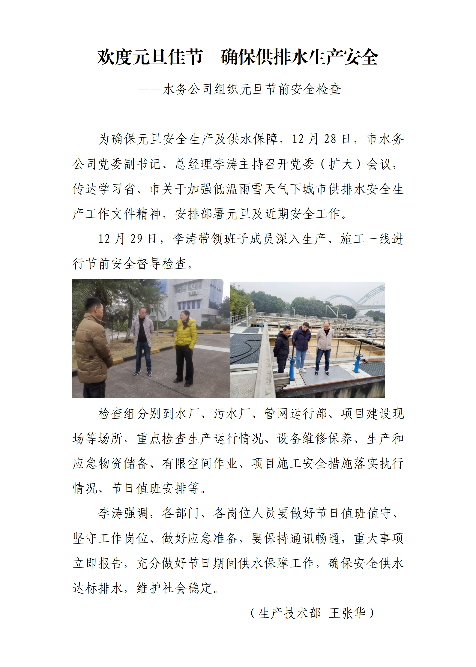 歡度元旦佳節 確保供排水生產安全