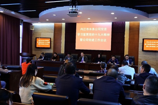 2017年11月14日下午,公司黨委在二會議室召開了學習宣貫黨的十九大精神暨公司黨建工作會。全體中層及以上干部、黨支部委員、黨辦工作人員共計38人參加了會議。會議由黨委副書記李濤主持。
