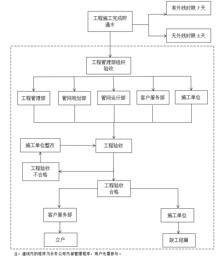 內江市水務有限責任公司給水工程驗收流程示意圖