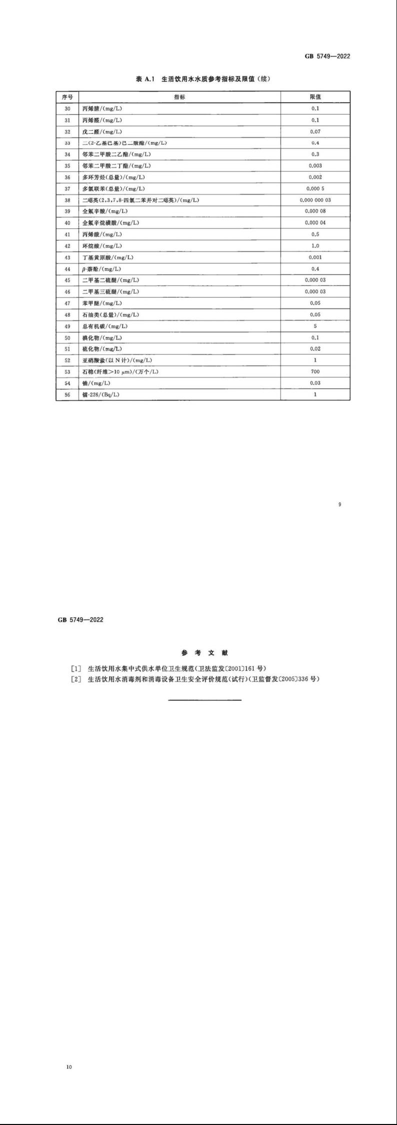 生活飲用水衛(wèi)生標(biāo)準(zhǔn)
