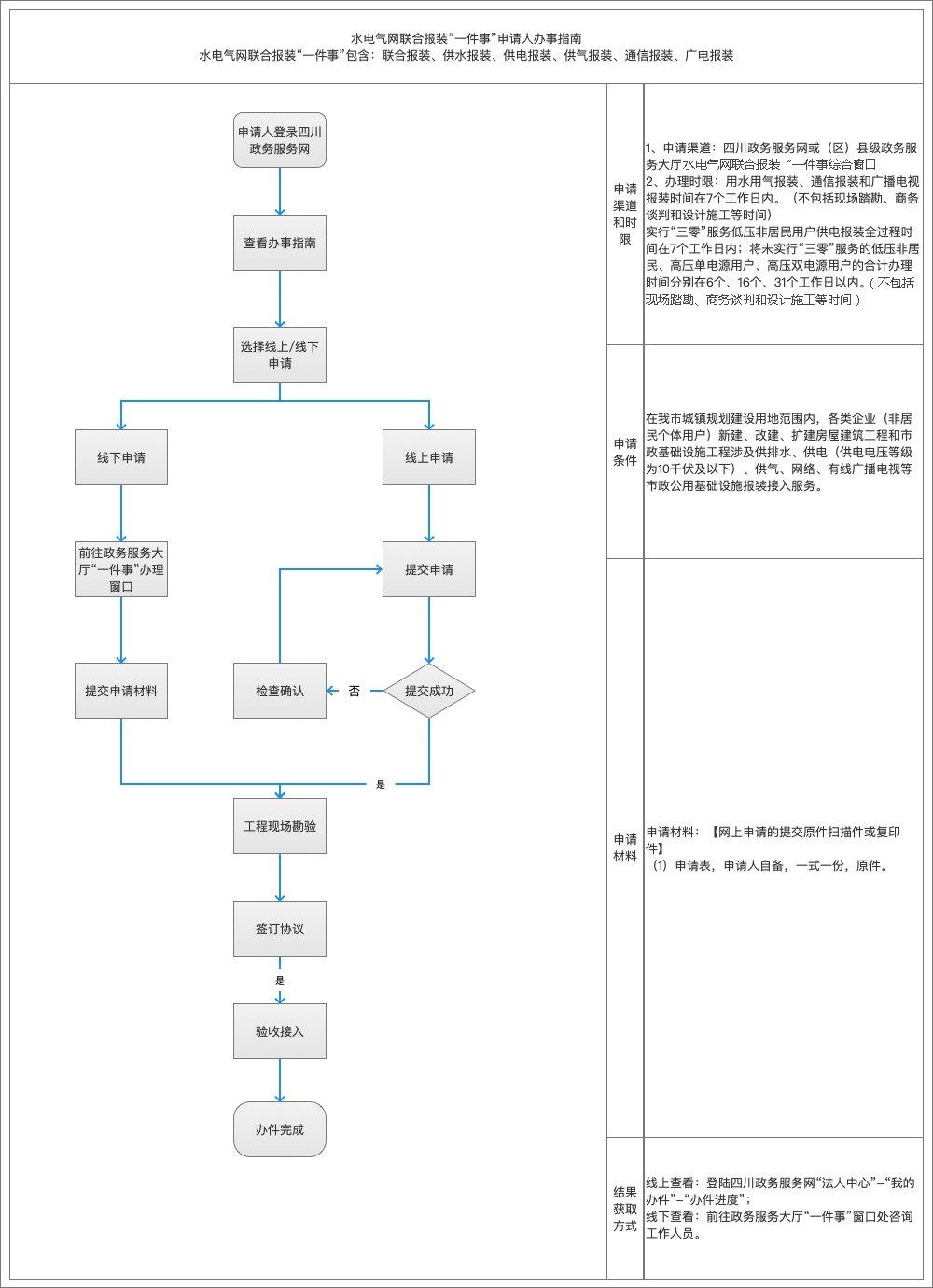 (二)申請人向當(dāng)?shù)卣?wù)中心水電氣網(wǎng)聯(lián)合報裝“一件事”綜窗提交申請材料。